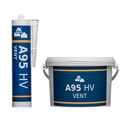 A95 VENT HV är baserad på akryllatex med gummiliknande egenskaper, som torkar vid avdunstning av vatten. Produkten är lätt att applicera. Tål hantering och transport vid minusgrader ner till -18°C, men lagring skall givetvis ske frostfritt.